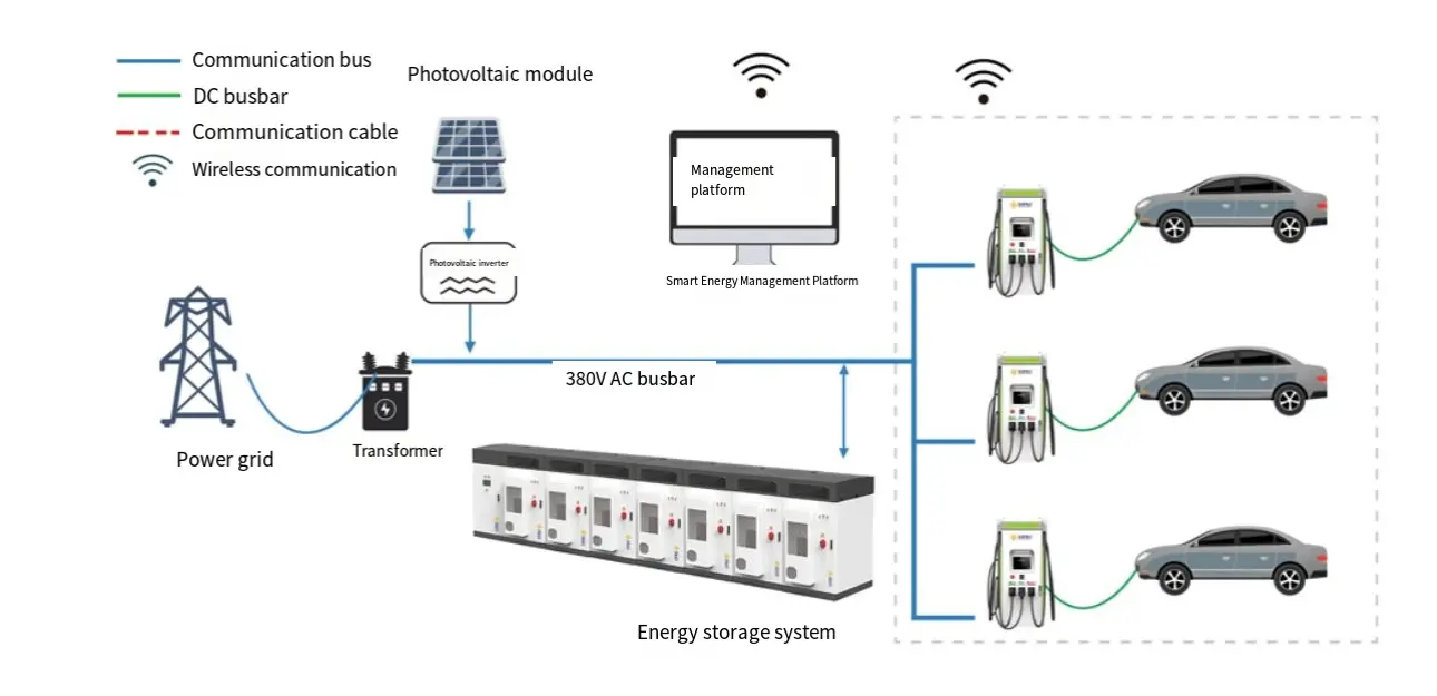 - Simultaneous Charging During Peak Hours: Grid, photovoltaic power, and batteries jointly charge vehicles, doubling charging power and diminishing grid dependence.