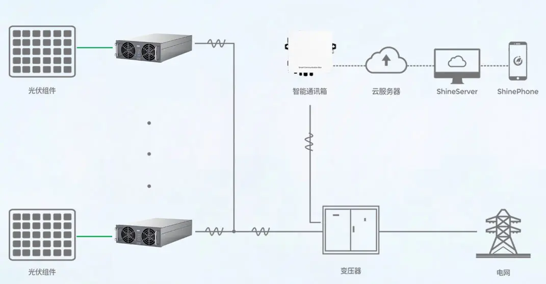 Help photovoltaic reduce costs and increase efficiency! It is applicable to plains, hills, mountainous areas, deserts, fish ponds, etc. It is installed in large and medium-sized ground-mounted photovoltaic power stations and connected to the medium-voltage power grid through a step-up transformer.